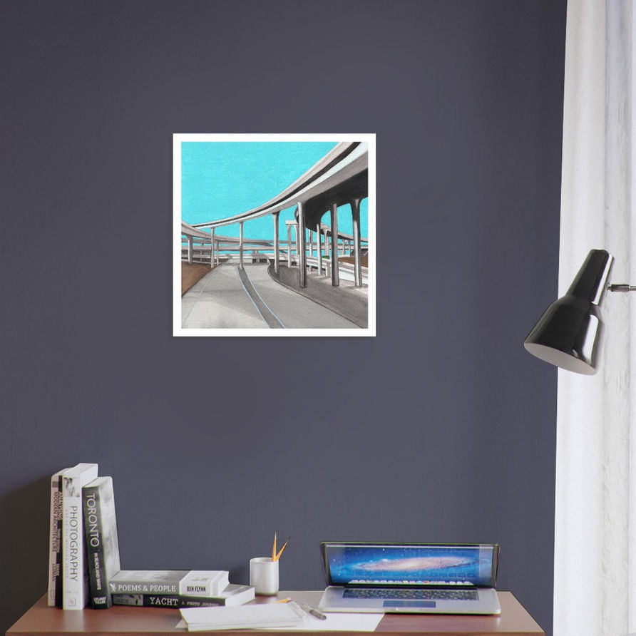 Transform your space with our Vibrant Fine Art Poster, showcasing a stunning design of a bright sky paired with sculptural freeway overpasses.
